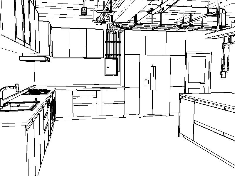 El proyecto está concebido bajo estándares LOD 300, optimizado para manufactura CNC, y enfatiza la coherencia visual mediante un sistema de ensamblaje sin herrajes visibles. La iluminación suspendida, infraestructura eléctrica, de protección contra incendios y ventilación mecpanica, configuran una narrativa visual de interacción industral con la Arquitectura técnica. En este marco, SOMA propone una reinterpretación contemporánea del minimalismo: no como vacío o ausencia, sino como presencia consciente del detalle constructivo, del acabado en crudo, donde cada componente revela su función con transparencia y rigor.